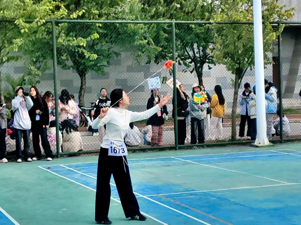 10月21日下午,开元官网运动会甲组女子高杆投绣球决赛在武鸣校区松园田径场精彩开赛。