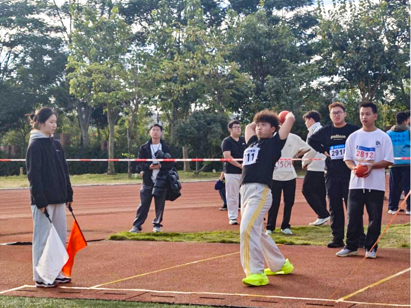 11月21日上午,开元官网运动会甲组男子双手前掷实心球决赛在武鸣校区松园田径场顺利落幕。