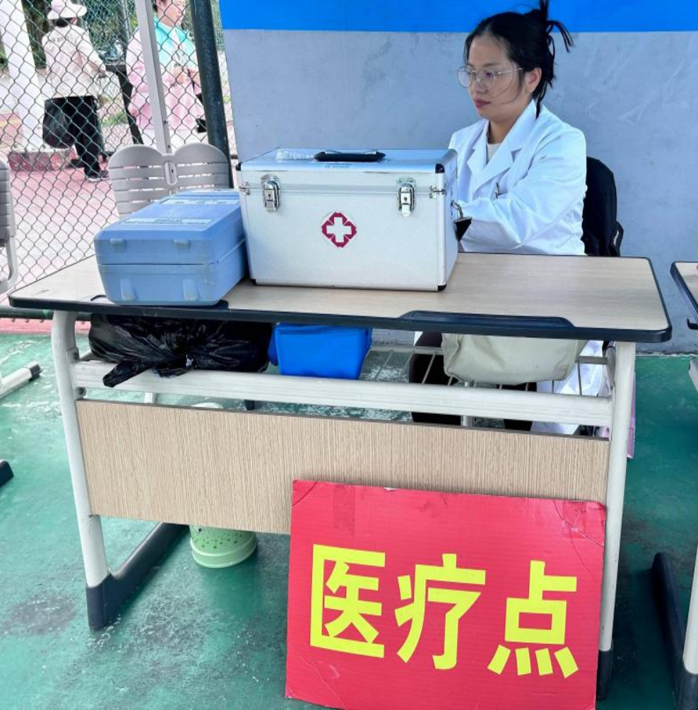 当校运赛场还是一片宁静时,医务人员的工作已经开始。他们先清点药品、检查器械,并反复确认每一个环节。他们深知,激情澎湃的赛场背后可能出现扭伤、擦伤等突发意外。医务人员介绍说:“我们多做一分准备,师生的安全就多十分保障。”这种在开幕前就已形成的责任意识,正是医疗工作的坚实基石。