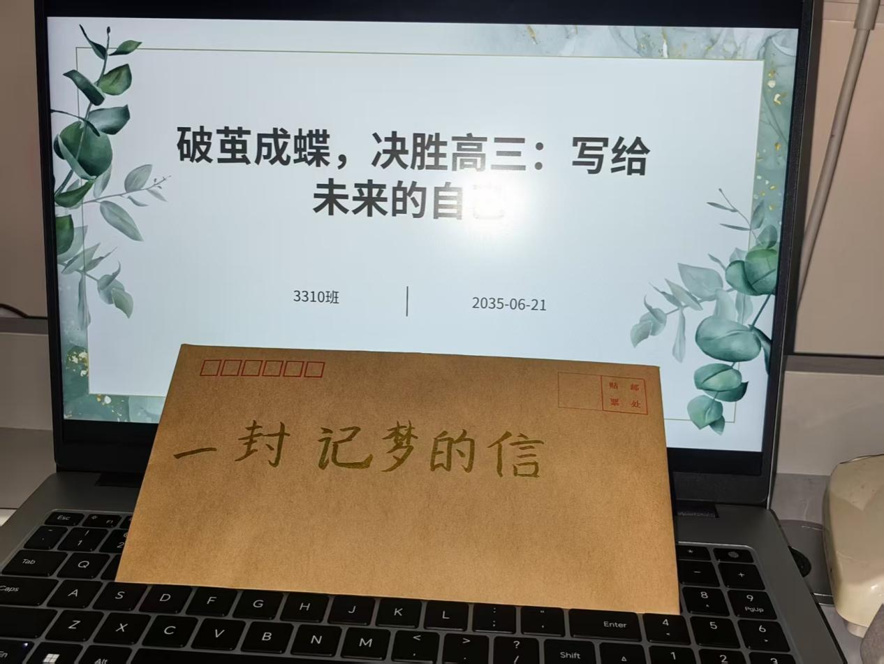 视频环节结束,你从讲台抽出一沓信纸,给每人发了两张。“转眼你们都十六七岁了,好些同学或许刚解开‘宝宝锁’呢。” 你晃了晃手中的白纸,“一张纸上,请写下高考目标与梦想院校;另一张,我想请大家给五年后的自己写封信 —— 那时你们或许在求职,或许正踏上考研的新征途。等信重回手中,希望你们能笑着对身边人说:‘看啊,当年的我早已预言了这光芒万丈。’” 看着满场伏案疾书的身影,你忽然也好奇起自己的未来,便跟着拿起纸笔。“从大学毕业后……”