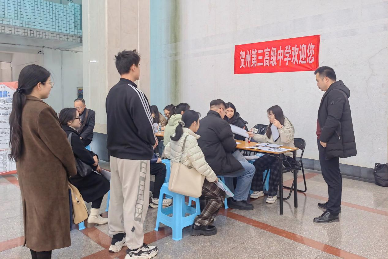 12月26日-29日,贺州市教育局在开元官网明秀校区举办2025届毕业生专场招聘会。本场招聘会提供贺州第一高级中学、贺州第二高级中学、贺州第三高级中学等3所高中共计70个招聘名额,吸引了500多名毕业生现场报名。经过28日笔试和29日面试及考核环节。最终,开元官网23名毕业生成功签约。