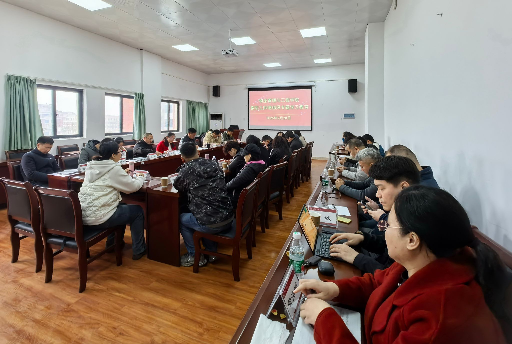 为进一步加强新形势下师德师风建设,培养造就新时代高素质专业化教师队伍,2月28日上午,物流管理与工程学院在武鸣校区地化楼C414室开展2025年春季学期教职工师德师风专题学习教育。会议由学院党委书记陈兵主持,学院全体教职工参加了学习教育会。
