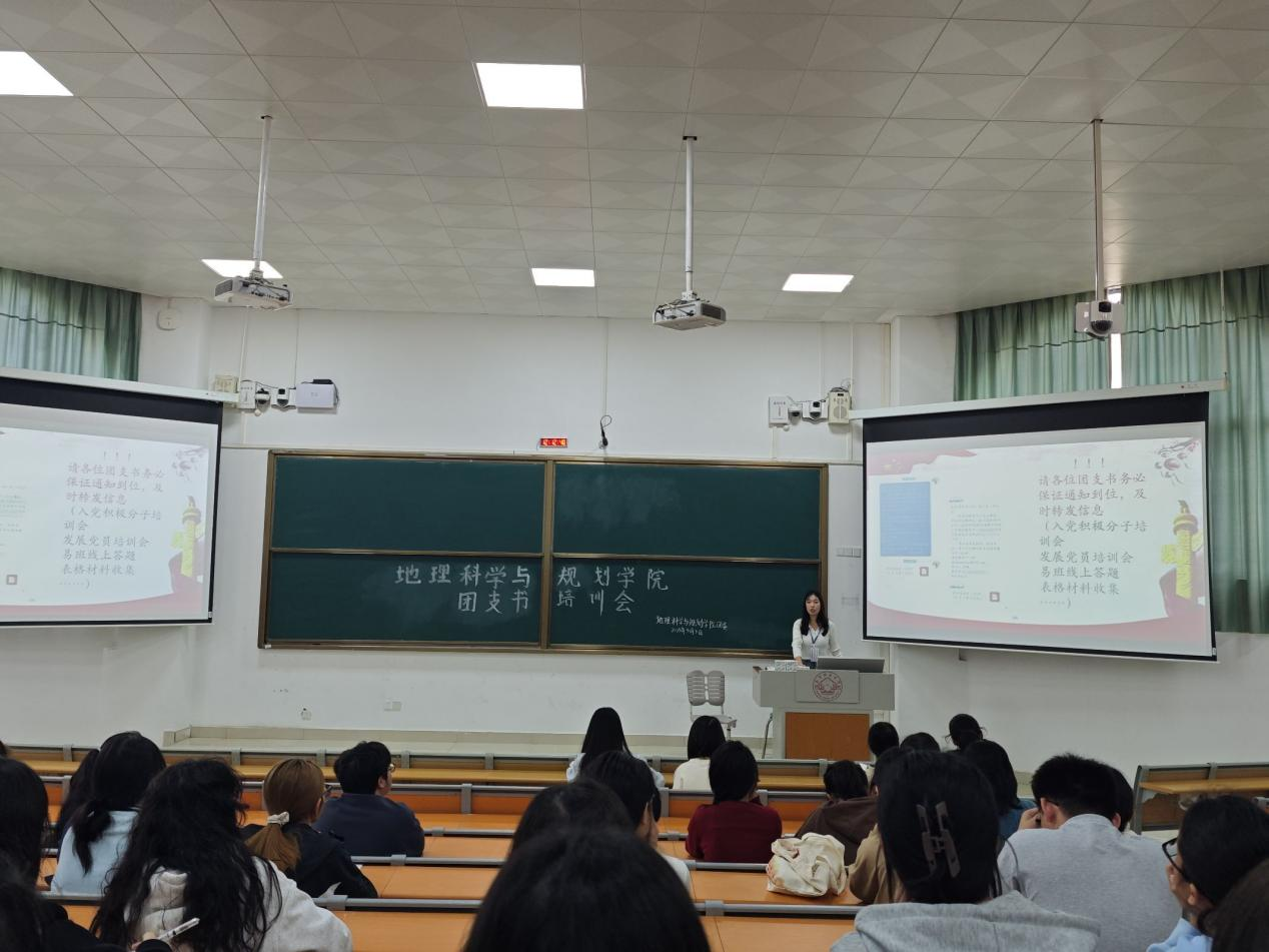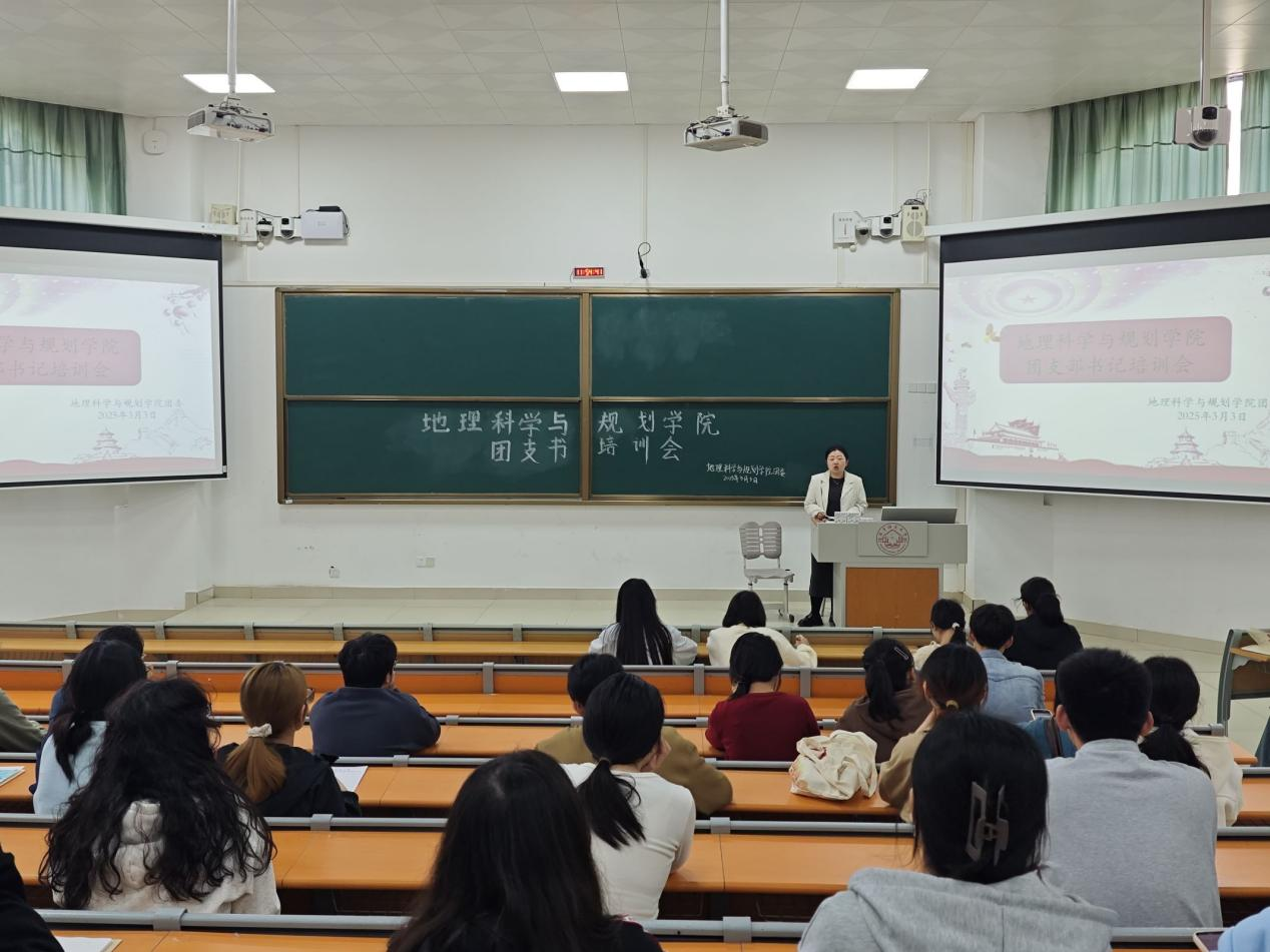 3月3日,地理科学与规划学院在武鸣校区一号教学楼215教室开展团支书培训会。会议由学院团委书记蔡琪主持,学院全体团支书参加。