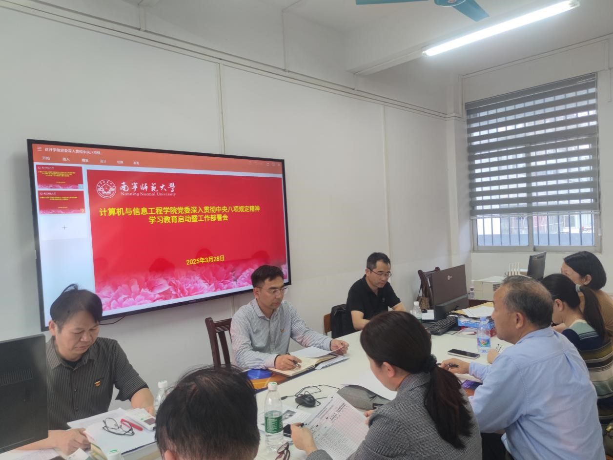 3月28日,计算机与信息工程学院党委召开深入贯彻中央八项规定精神学习教育启动部署会。学院党委副书记(主持党委工作)黄江涛主持会议并作工作部署,学院党委委员、专职组织员、纪委委员参加会议。