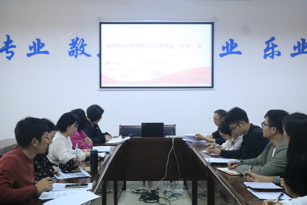 3月25日下午,新闻与传播学院在理综304会议室召开2025年党委(扩大)会。学院党委书记聂卉、党委副书记黄敏以及党委委员参加会议,各党支部书记列席会议。会议由学院党委书记聂卉主持。