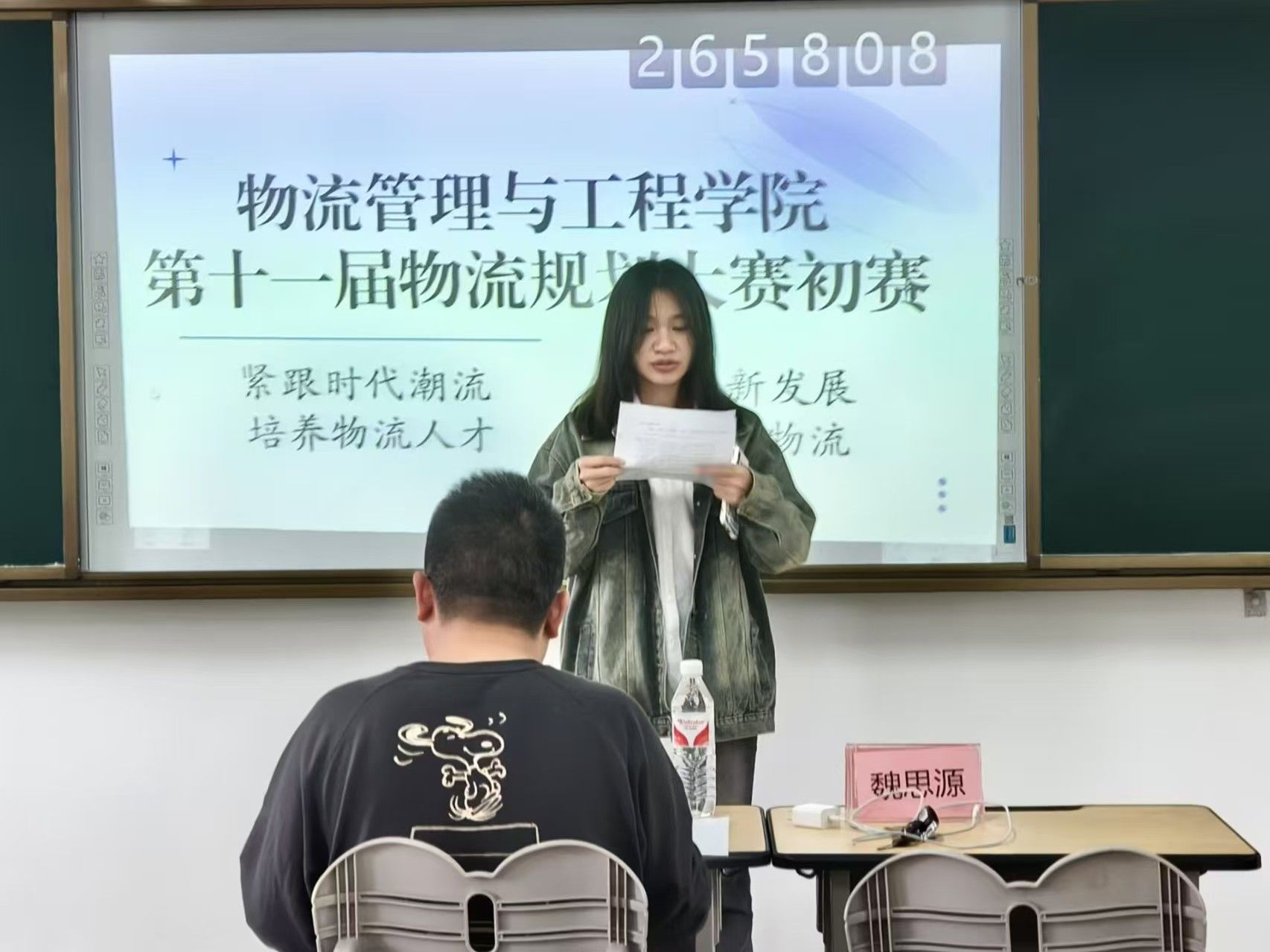 为激发同学们对物流领域的兴趣与热爱,提升同学们的专业能力,物流管理与工程学院于4月8日下午在武鸣校区二号教学楼303、304、305、306、307教室举办了第十一届物流规划大赛初赛。学院党委书记陈兵出席此次比赛,欧阳、徐志刚、沈小静、魏思源、李柯南5位老师担任比赛评委,学院大一至大三各专业共计94名同学参加比赛。