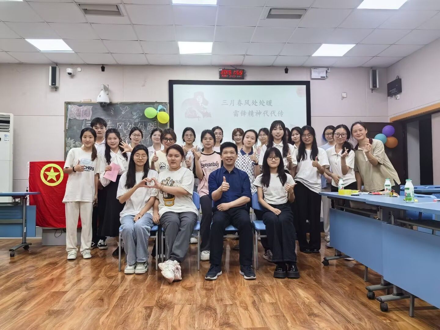 3月27日,初等教育学院23级陶行知实验班团支部在五合校区综合楼512开展了以“三月春风处处暖,雷锋精神代代传”为主题的团日活动。初等教育学院党委委员、23级陶行知实验班班主任罗聿言老师以及23陶研班团支部全体成员参加。