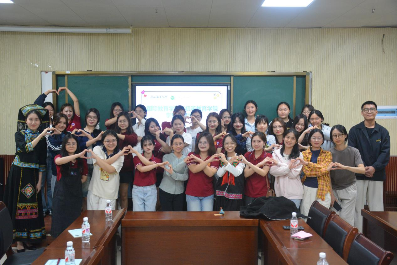 座谈交流环节,李欣老师对远道而来的留学生表示了热烈的欢迎,并简要介绍了学院的基本情况,希望同学们以本次活动为契机积极互动交流,增进彼此了解,加深真挚友谊。陈传忠副院长重点从人才交流合作、毕业生就业等方面介绍了国际教育学院的情况,并鼓励同学们拓展国际视野,不断提升跨文化交流能力,主动做中外文化交流的桥梁和使者,助力多元文化在校园里交流互鉴、绚丽绽放。随后,初等教育学院学生代表林金兰向留学生们介绍初等教育学院的“第二课堂”特色活动,如手工制作比赛、少先队鼓号技能比赛、课本剧大赛、劳动实践活动等,留学生们被深深吸引,产生了浓厚的兴趣。在自由交流环节,大家充分沟通,互相交流学习生活中的体验,现场氛围热烈而愉快。