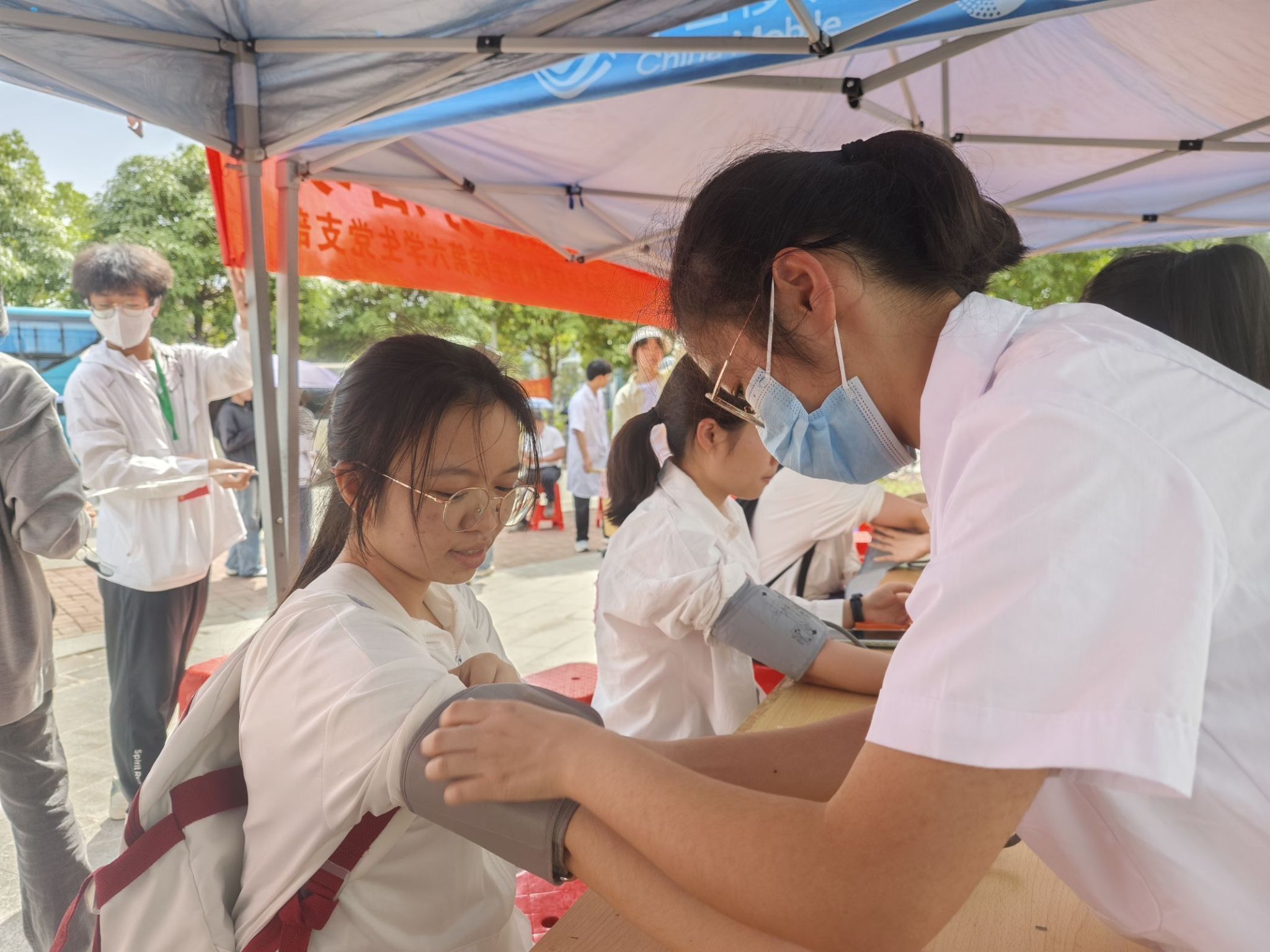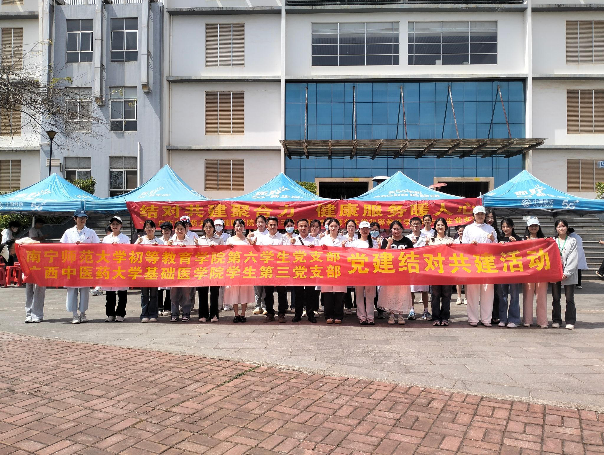 为了深入贯彻落实健康中国战略,加强校园健康教育,提升师生健康意识,4月15日下午,KY开元集团官网初等教育学院第六学生党支部联合广西中医药大学基础医学院学生第三党支部在KY开元集团官网五合校区桃李苑食堂正门开展“结对共建聚合力,健康服务暖人心”党建结对共建活动。