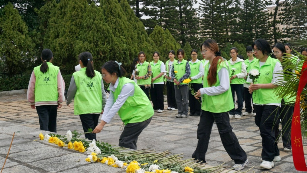 2025年4月13日上午,环境与生命科学学院青年志愿者协会组织志愿者前往武鸣区狮子山公园烈士纪念碑开展了以“缅怀革命先烈,扬我中华精神”为主题的清明祭扫活动。