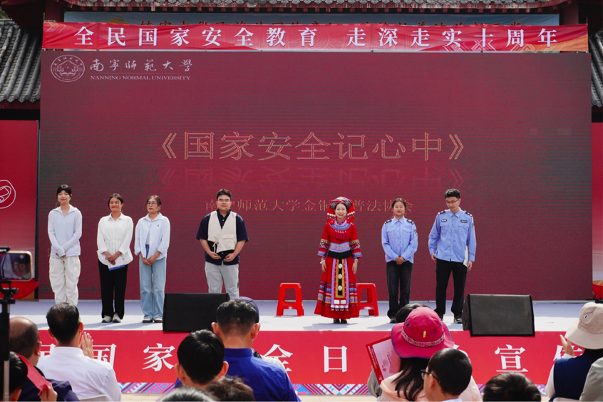 活动中,协会成员精心编排的小品串烧《国家安全记心中》精彩上演。小品以两个贴近生活的故事展开:一是骗子假借“国家安全”之名,诱骗王大妈透露银行账户信息;二是阿珍因向往“外国梦”,险些被间谍套取国家安全机密。生动的表演让观众们深刻认识到国家安全的重要性,以及在日常生活中保持警惕、防范间谍诈骗的必要性。表演尾声,协会成员与现场普法队伍共同合唱《民法典尼的呀》,将活动氛围推向高潮,赢得阵阵掌声。