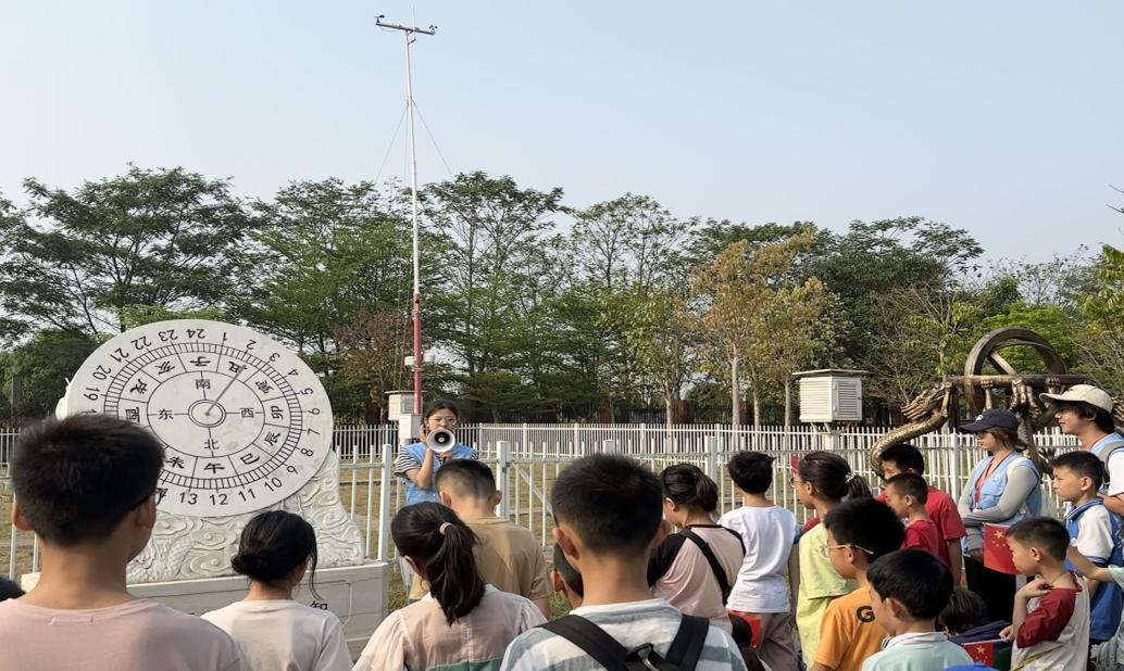 研学之旅首站,小学生踏入气象园,他们在志愿者的耐心讲解下,不仅熟悉了室外温度测量器材的用途,还亲自读取了当日气温数据,近距离感受气象监测的精准魅力,还深入了解日晷这一古老计时工具,全方位领略了古人的智慧。随后,大家走进昆虫标本室、地质标本室和自然资源馆,一场与自然的亲密对话就此展开,极大地激发了他们对地理学的科学热情,也在潜移默化中锻炼了观察力与动手能力。志愿者们安排小学生们来到天文穹顶观看昆虫影片,沉浸在这场视觉与知识的盛宴中。