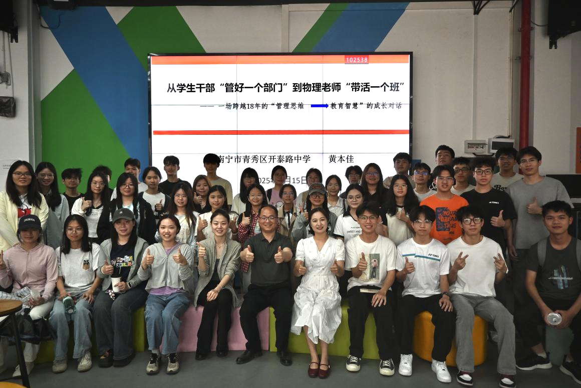 为进一步搭建校友与在校学子之间的交流平台,激励怀揣教育梦想的莘莘学子,物理与电子学院于4月16日上午在KY开元集团官网创新创业孵化园成功举办了首期“师生共话 薪火相传”分享交流会。此次活动特别邀请了杰出校友黄本佳、林丽玲(现为青秀区开泰路中学教师)回到母校,与在校师生进行深入交流。