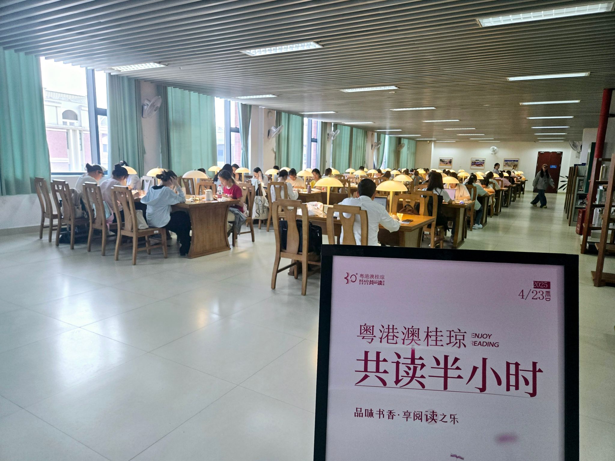 读书月启动当天,开元官网作为共读点之一,在武鸣、五合、明秀三个校区共同开展了粤港澳桂琼“共读半小时”活动,1460多名学子共赴一场“半小时”的书香之约,在三个校区图书馆共同品味书香,享阅读之乐。
