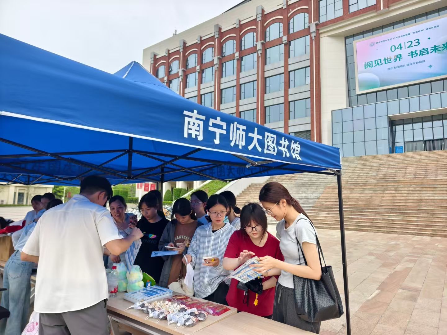 在4.23世界读书日当天,图书馆携手超星、万方、维普、可知、皮书等数据库商在武鸣和五合校区开展了AI馆员体验、图书需求调研、电子书荐购、数字资源及读书月各项活动宣传推广等丰富多彩的活动,并发布了开元官网2024年度“读书明星”“移动阅读之星”,以此树立读书榜样,引领校园读书风尚。活动当天,AI馆员上线体验成为本次读书月现场宣传活动的一大亮点,AI馆员不仅能够提供馆藏资源查询、资源推荐服务,解答关于图书馆资源与服务的各种问题,还能提供AI翻译、AI阅读等功能助力师生读者多元化的知识获取和学术研究。通过与AI馆员的互动,不少读者表示对AI智能技术在图书馆服务中的应用有了全新的认识。此外,“考研书免费送”活动也广受同学们欢迎和好评,电子书荐购和数字资源推广活动同样吸引了众多师生参与。整个活动现场气氛热烈,参与师生纷纷表示收获颇丰。