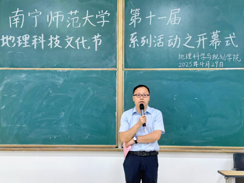 4月29日,地理科学与规划学院在武鸣校区地源楼B107室举办第十一届地理科技文化节开幕式。学院副院长赵银军、学工办辅导员李洁柳、覃辰柳、农宇鹏及百余名学生参加活动。