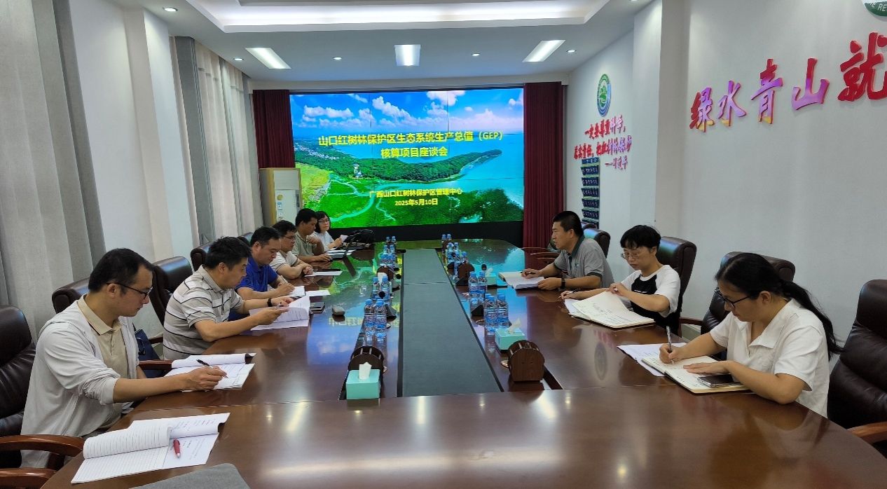 广西山口红树林国家级自然保护区位于合浦县沙田半岛东西两侧,是一个以红树林生态系统为主要保护对象的自然保护区。保护区管理中心副主任张宏科等热情接待了调研组。座谈会上对我院参与的山口红树林保护区生态系统生产总值核算项目进行交流,三方围绕项目内容、研究方法、成果产出等方面展开深入讨论。在此基础上,三方一致认为未来可在红树林生态系统监测、国际重要湿地保护等方面加强合作,致力于红树林生态系统的可持续发展。