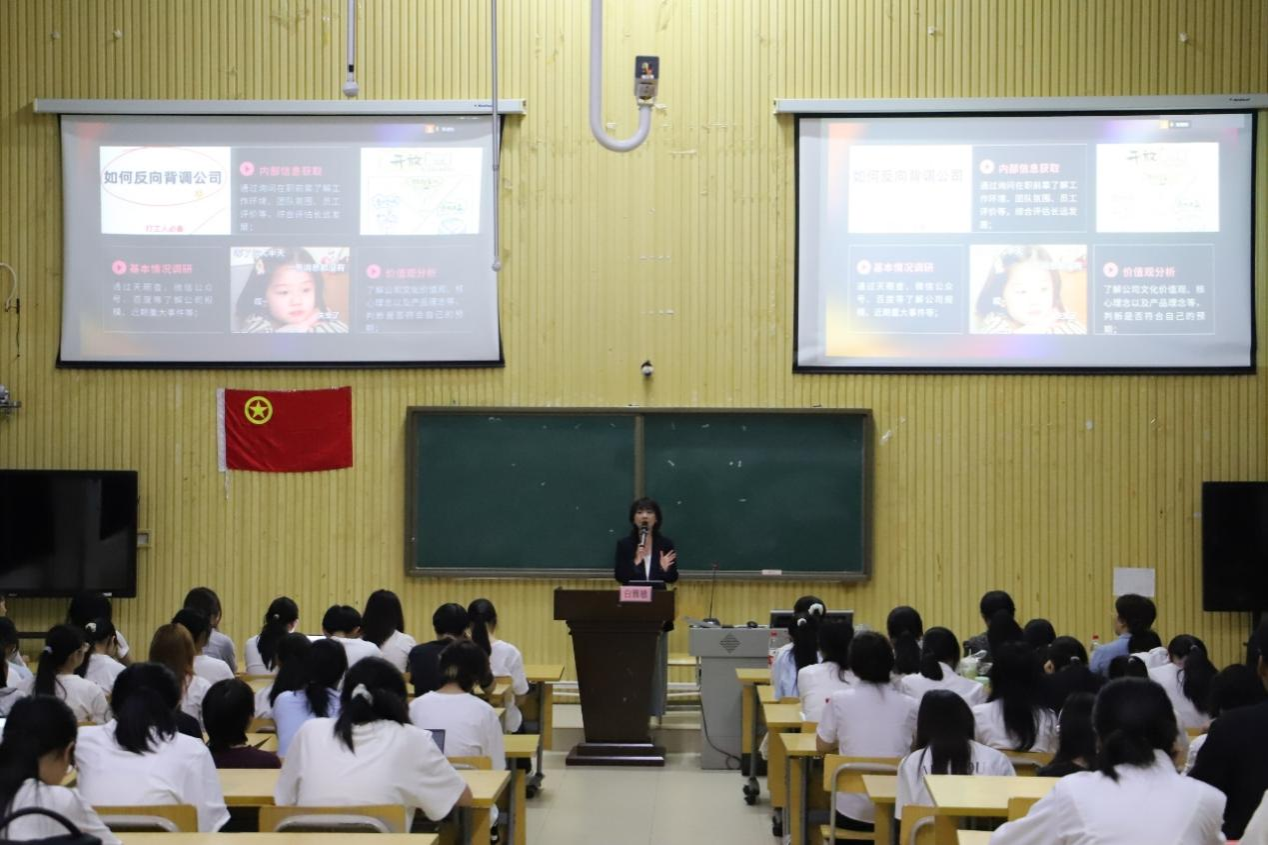 白雅敏表示,简历是求职的“敲门砖”,清晰明确的求职意向是首要前提。在制作简历时,应围绕思考力、学习力、总结力这三大核心要素展开。在面试准备环节,建议同学们“反向背调公司”,提前了解公司业务、文化、发展战略等,做到知己知彼。面试时,要保持稳定心态,允许自己在过程中有小失误,以轻松自信的状态面对。