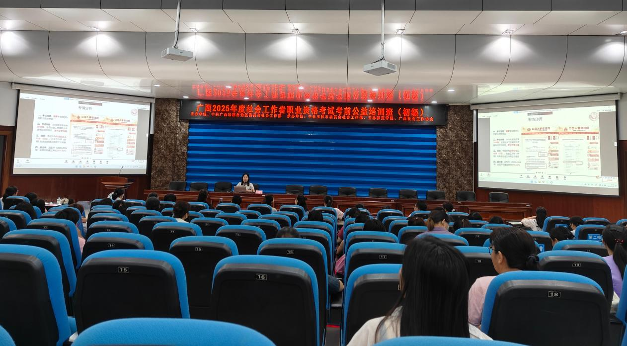 5月,社会工作系教师团队全面参与社会工作者职业资格考前培训工作。文丽老师及兼课教师黄燕春为由区党委社会工作部举办、广西社会工作协会承办的广西2025年度社会工作者职业资格考试(百色、玉林场)考前培训班授课;李瑜、蓝咏石等教师为南宁市各县区考生开展考前辅导培训,该培训由南宁市委社会工作部举办、南宁市社会工作协会承办。系列课程累计服务考生逾1800人次,助力提升全区持证社工比例。