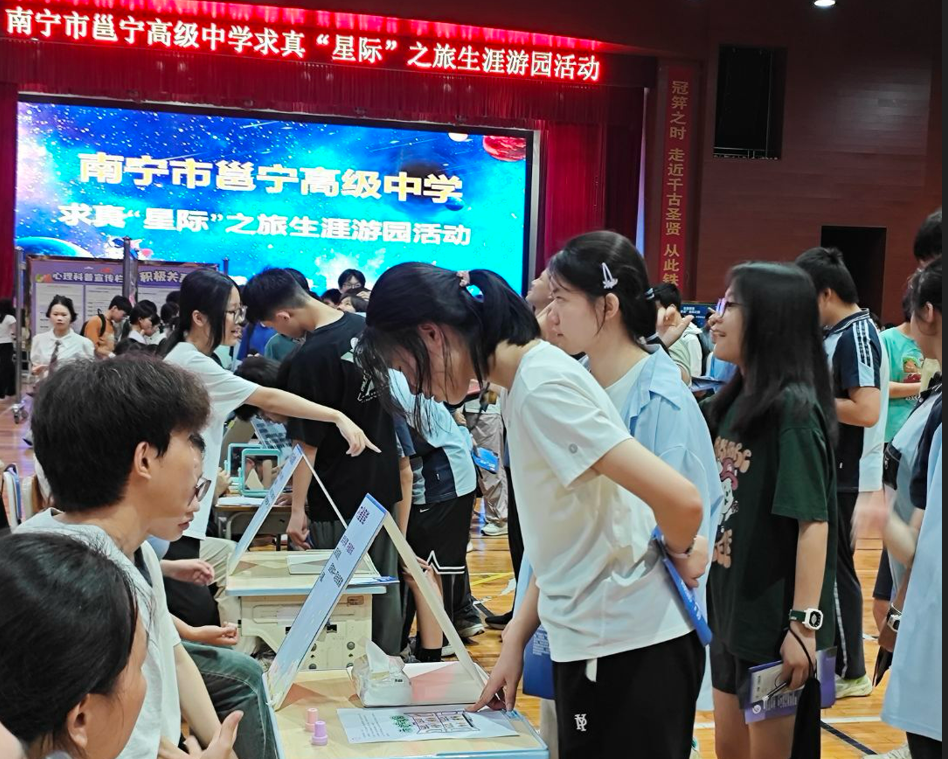 5 月 16 日,KY开元集团官网教育科学学院 23 级应用心理专业学生与心理健康协会成员作为志愿者参与到南宁市邕宁高级中学“携手共进,心向未来——生涯探索的求真星际之旅”主题游园活动,进行职业体验。