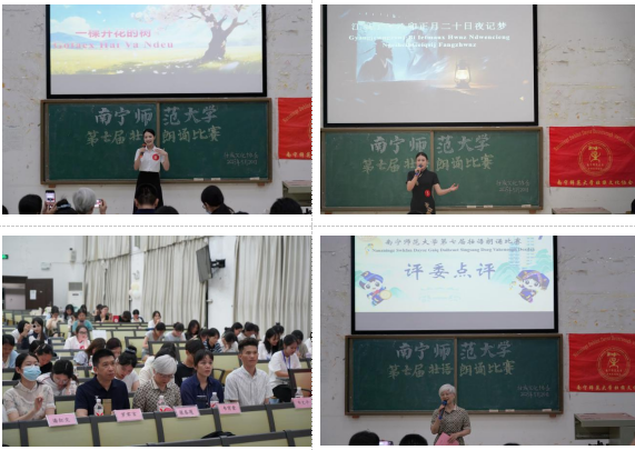 活动伊始,主持人以热情洋溢的开场白点燃现场氛围。随后,梁秀清副院长致辞,他指出壮语承载着独特的文化内涵,鼓励同学们以此次比赛为契机,深耕文化传承,铸牢中华民族共同体意识,并预祝选手们赛出水平与风采。赛场上,选手们精神饱满,将《我爱这片土地》《你是人间四月天》《将进酒·君不见》等经典篇章诠释得淋漓尽致,用壮语传递深情,让现场观众在诵读声中领略中华经典文化与壮乡文化融合的独特魅力。经过激烈角逐,最终产生一等奖2名,二等奖3名,三等奖5名。赛后,评委梁春莲老师对本次比赛进行点评。她从“深格:解读文本有深度;精格:技巧使用较恰当;满格:情感表达很饱满”三个维度对选手们的表现进行了全面点评,并以“升格、进格、全格”对选手们未来的努力方向提出了建议。
