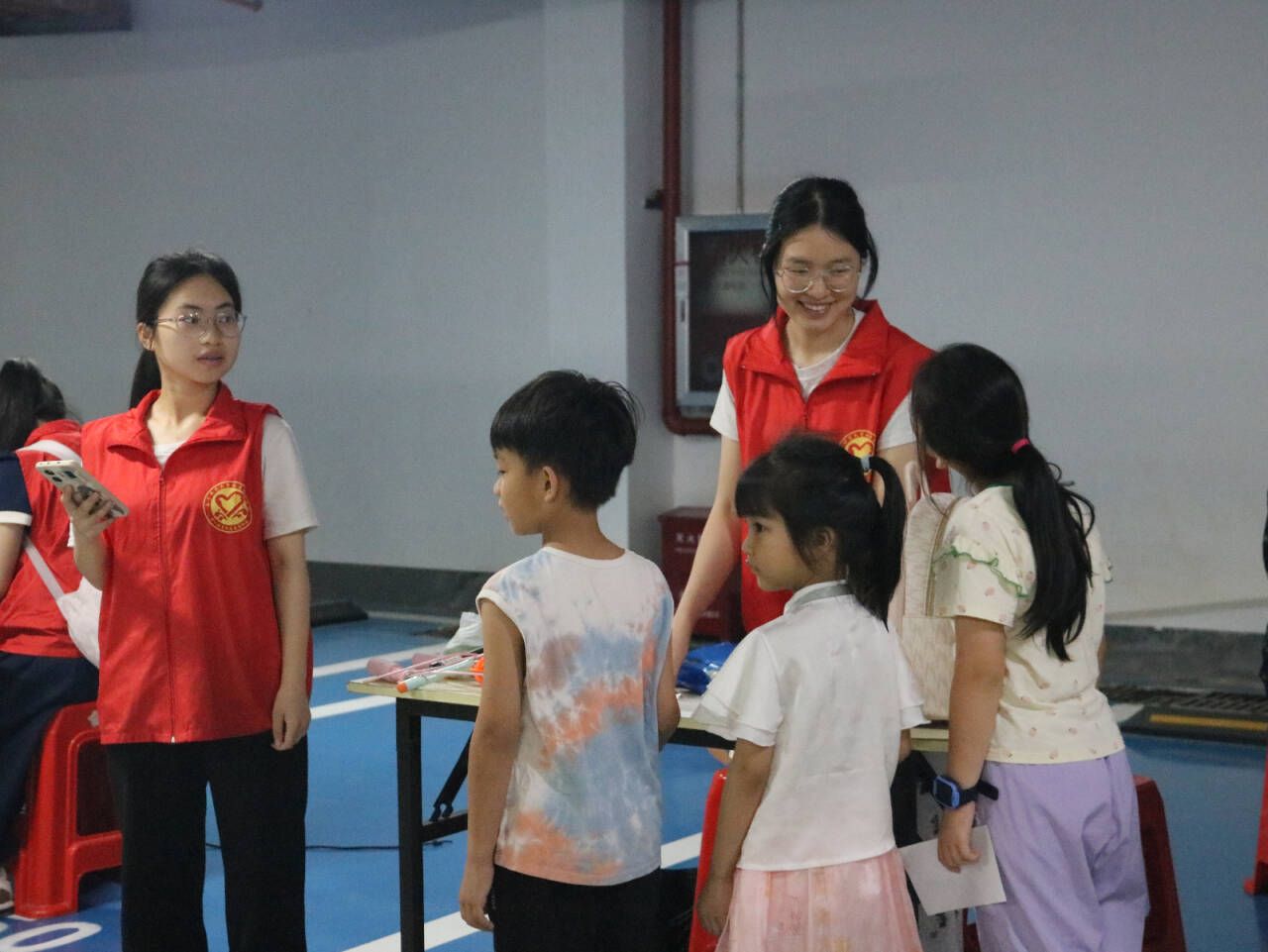 此外,围绕“六一”儿童节主题,初教院青协精心策划了欢乐套圈、知识竞答、跳绳、夹黄豆、小小搬运工、走“钢丝”等六个趣味小游戏。孩子们热情高涨,积极踊跃参与各项游戏,志愿者们全程耐心引导,孩子们凭借集章卡可兑换心仪奖品,现场欢声笑语不断,气氛热烈欢快。
