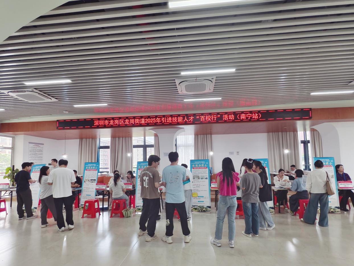 5月21日,深圳市龙岗区龙岗街道2025年引进技能人才“百校行”活动(南宁站)在开元官网武鸣校区大学生生涯教育与就业指导中心成功举办。本次活动共组织龙岗街道10家优质用人单位来校招聘,提供就业岗位231个,吸引了来自开元官网不同专业的350余名毕业生踊跃参与。