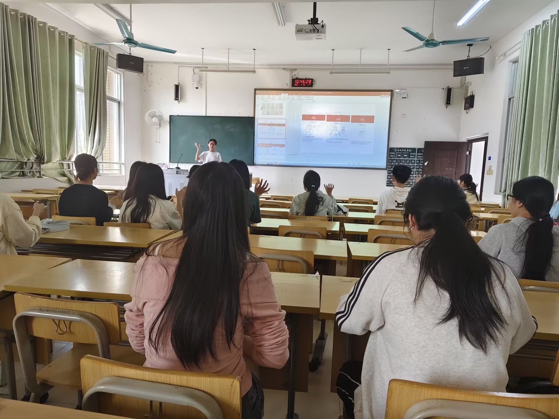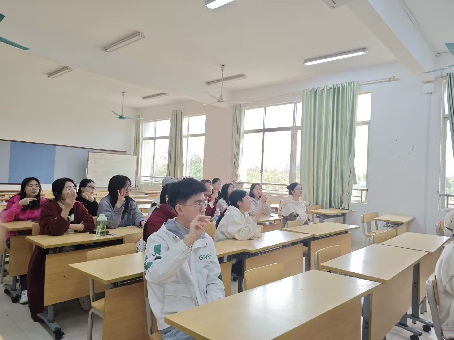 子活动三为“纤纤素手,传递语言”手语教学主题活动。手语班教学活动的开展不仅促进了同学们对手语知识的了解,丰富大学生活,促进自身全面发展,且同学们成为手语文化的传播者,能让更多人了解手语的重要性和魅力,提高社会对手语的关注度;活动还扩大了手语的普及性,加强普通人与听障人士的沟通与交流,营造更加包容平等的社会环境。