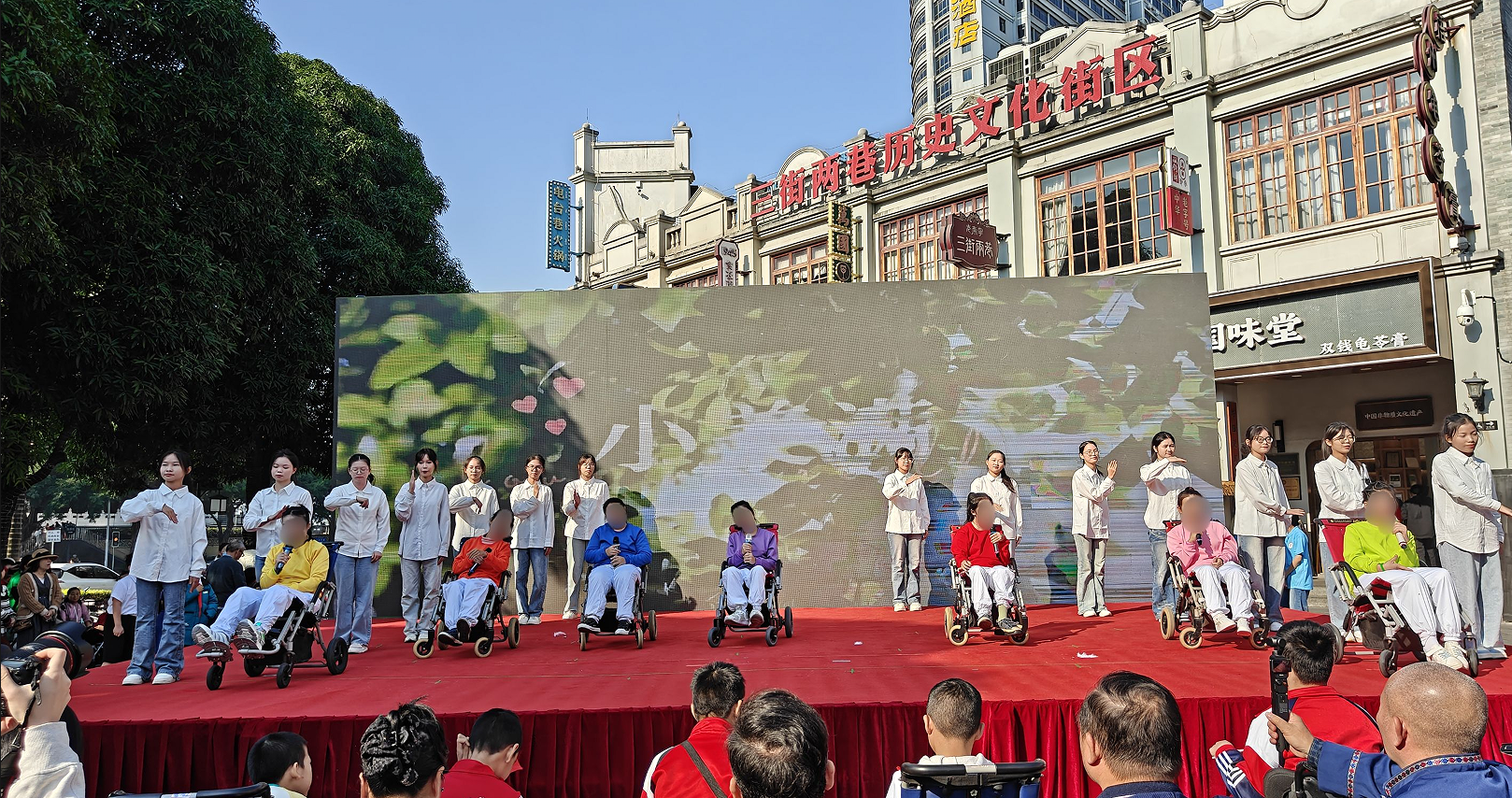 子活动一为“有爱相伴,助力同行”助残活动。通过阳光特教社携手残障儿童共同展示手语舞《小美满》,有效促进同学们对特殊群体的关注和了解,激发社会助残热情,宣扬“奉献、有爱、进步、互助”志愿精神,加强大学生奉献精神和服务意识的培养,展现团结互助精神面貌。