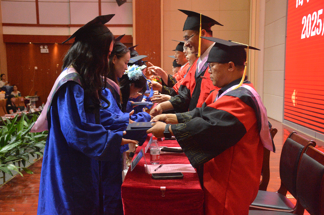 随后,学院党委副书记苏学权宣读优秀毕业生表彰文件。在主席台就座的学院领导、学院各系主任、教研室主任、学位评定分委员会委员和硕士生导师为优秀毕业生代表颁发荣誉证书,为全体毕业生颁发毕业证书,并为全体本科毕业生颁发学位证书,逐一拨穗,现场洋溢着感恩与祝福、期许与憧憬交织的温情和喜悦。随着校歌《芳华人间》的旋律久久回荡,整个毕业典礼顺利落幕。