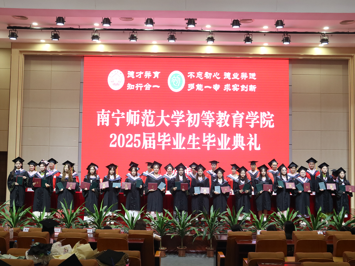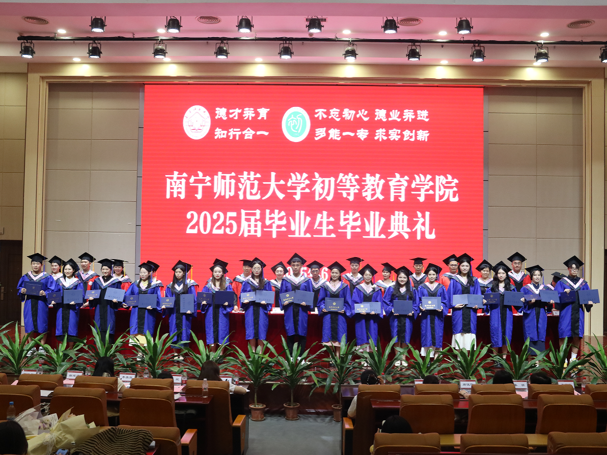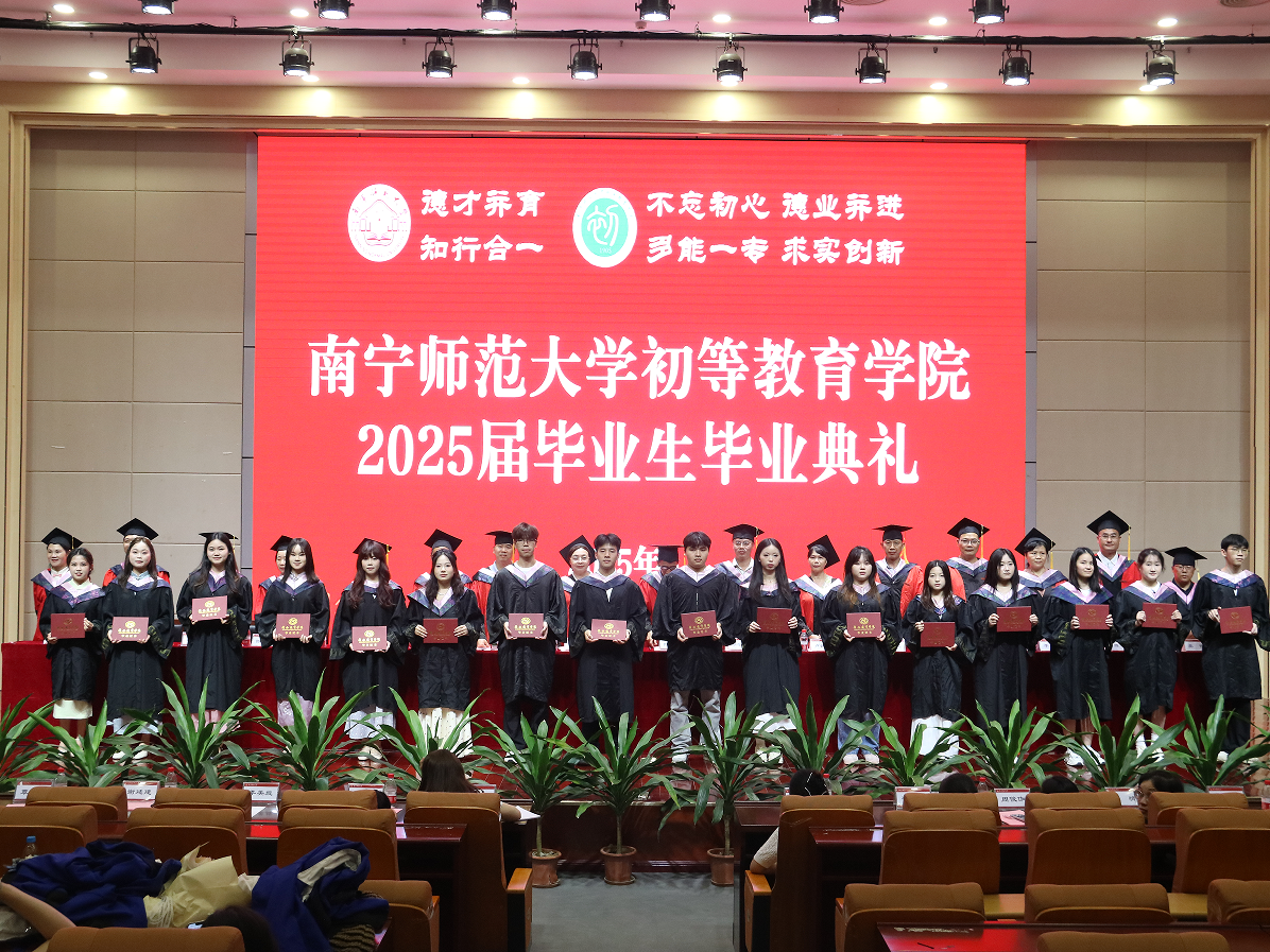 院长梁宇在致辞中从课堂理论研习到教育教学实践,从学科竞赛突破到教育情怀培育,对同学们的成长轨迹如数家珍,她激励毕业生“以终身学习为帆,在基础教育一线践行立德树人使命”,让初教学子的教育情怀扎根八桂大地。