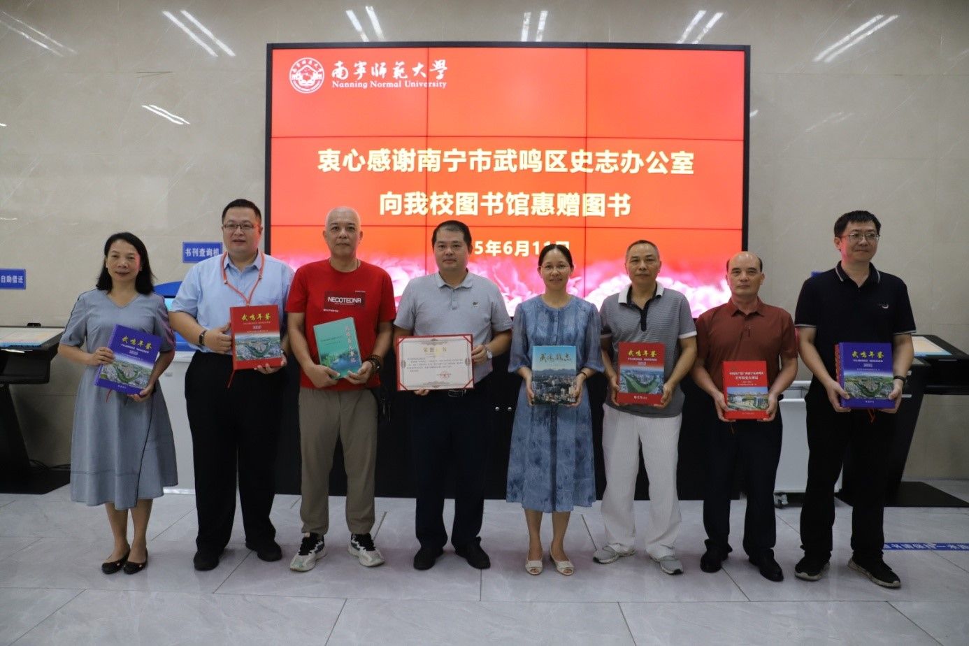 6月11日,为支持地方文化事业发展,更好地完善图书馆馆藏体系,南宁市武鸣区史志办公室向开元官网图书馆捐赠地方文献图书。武鸣区史志办公室主任潘瑞山、副主任韦笔文,武鸣区图书馆馆长杨尚旻,开元官网图书馆馆长叶佩珍、副馆长玉丽东及梁洲辅教授等出席图书捐赠仪式。