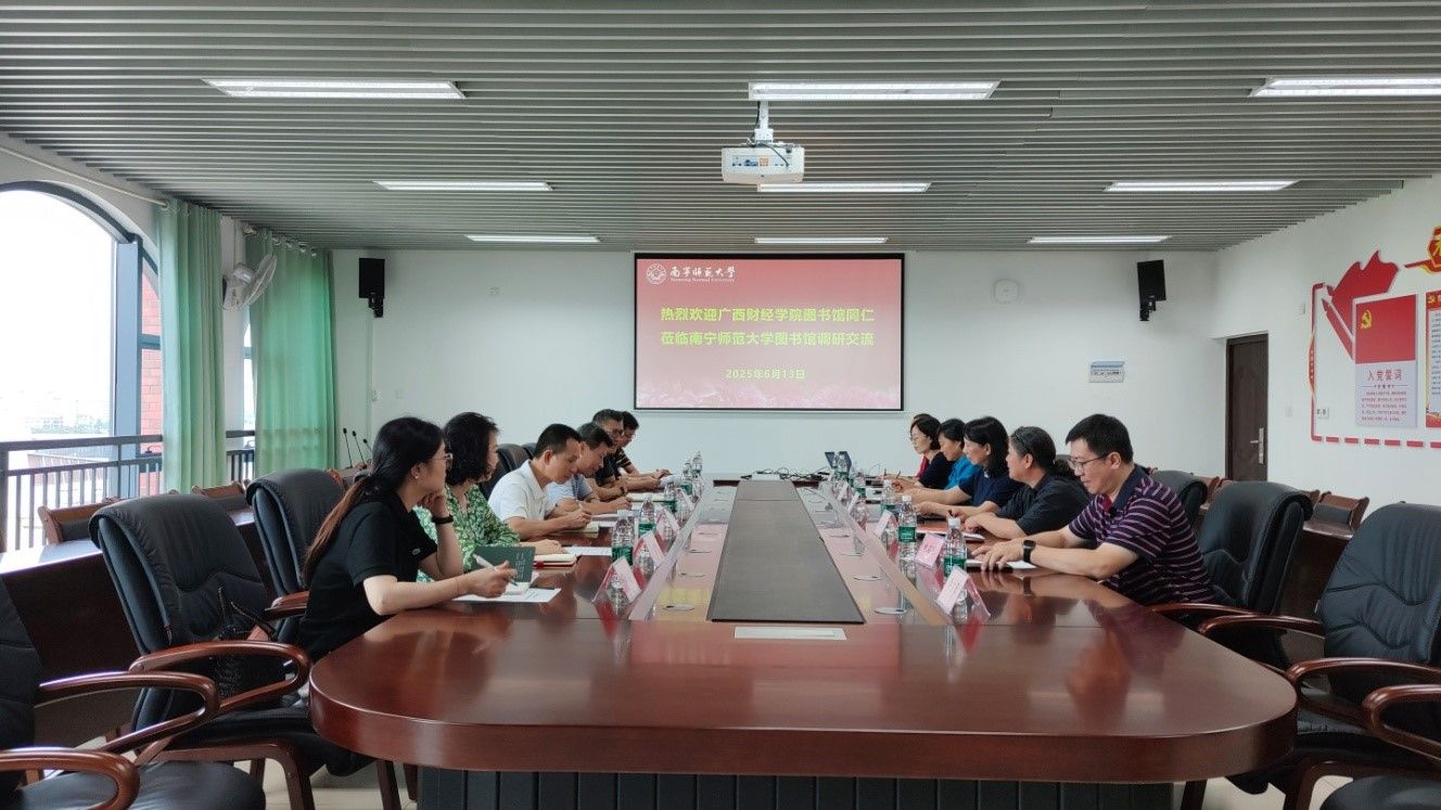 6月13日,广西财经学院图书馆李顺明馆长一行7人到开元官网武鸣图书馆参观访问,开展业务调研交流工作。开元官网图书馆副馆长玉丽东和相关人员在武鸣图书馆6楼会议室接待李顺明一行并进行调研座谈会。