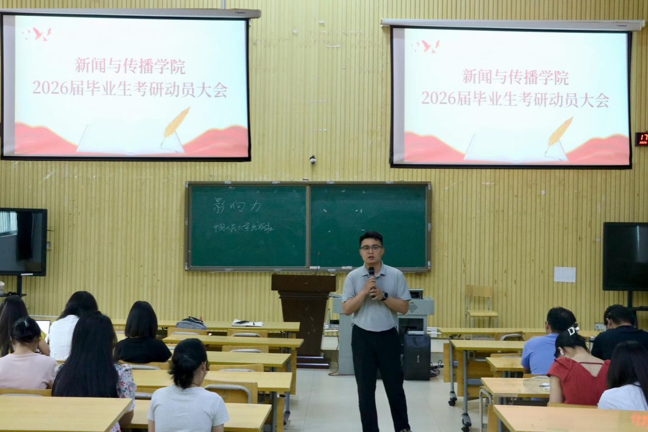 6月10日下午,新闻与传播学院在五综107教室召开2026届毕业生考研动员大会,辅导员兰浩玮担任主讲。