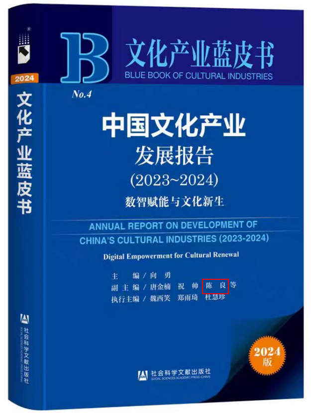 近期,由职业技术师范学院院长陈良教授团队受邀参与、由北京大学文化产业研究院(文化和旅游部“文化和旅游研究基地”)牵头编撰的《文化产业蓝皮书》——中国文化产业发展报告(2023-2024)正式发布。该书以“数智赋能与文化新生”为主题,深度剖析数字化、智能化技术对文化产业的革新作用,为新时代文化高质量发展提供理论支撑与实践指南,以学术前瞻性与行业指导性引发学界与业界广泛关注。