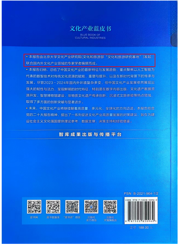 《文化产业蓝皮书》——中国文化产业发展报告(2023-2024)的发布,不仅是学院服务国家文化战略的具体实践,更为学院师生投身文化产业创新研究注入强劲动力。