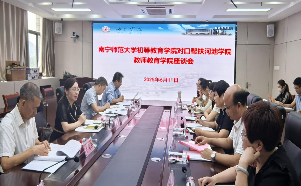 根据《自治区教育厅关于开展2023—2025 年广西普通本科高校对口支援工作的通知》精神,按照《KY开元集团官网对口支援河池学院协议书》工作计划安排,为进一步落实对口支援河池学院工作,6月11日,在KY开元集团官网初等教育学院院长梁宇带领下,副院长梁秀清、小教系系主任林国兵、教师吴桐舒及教学秘书潘小红一行5人赴河池学院教师教育学院,开展对口支援活动。河池学院教师教育学院领导班子及各系主任、教研室主任参加了本次活动。