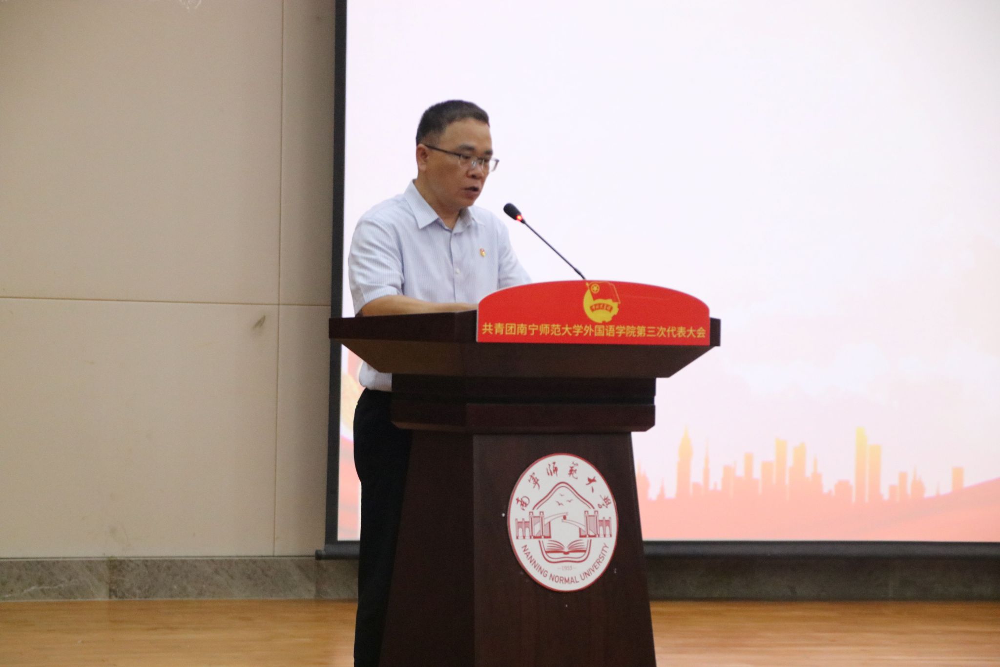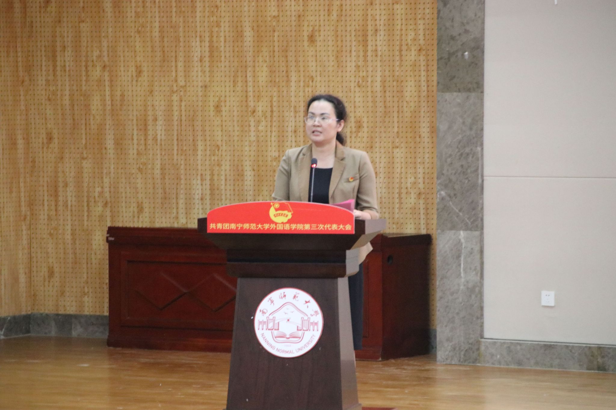 区书记代表校团委致贺词。她指出,我院团委始终围绕立德育人目标开展多种活动,使得我院青年取得多项荣誉,展现了外国语学院学生的青春风采。对于即将诞生的新一届团委,校团委寄予厚望:期望他们能高举思想的大旗,始终心系青年群体的需求,敢于自我革新,在其引领下为学校的繁荣与发展注入新的动力。