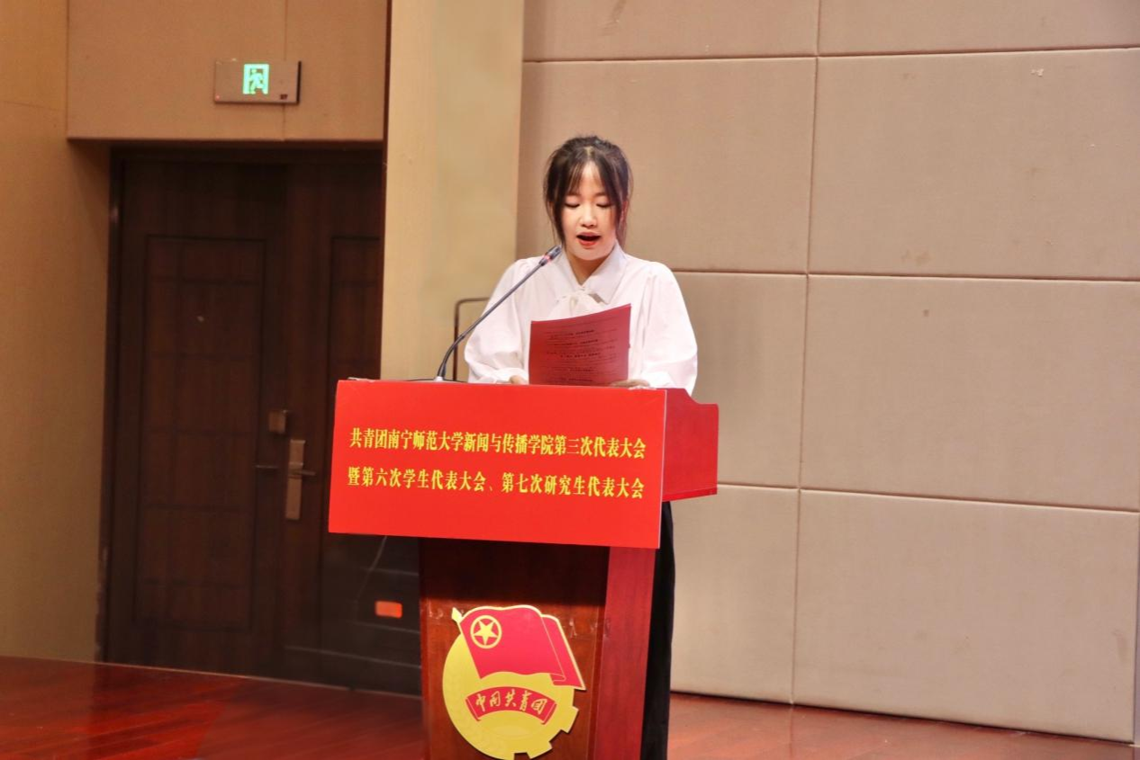 最后,当选学生会主席团代表的高艺涵同学宣读倡议书,李虹霏老师致闭幕词。共青团KY开元集团官网新闻与传播学院第三次代表大会、第六次学生代表大会暨第七次研究生代表大会在校歌《芳华人间》中闭幕。