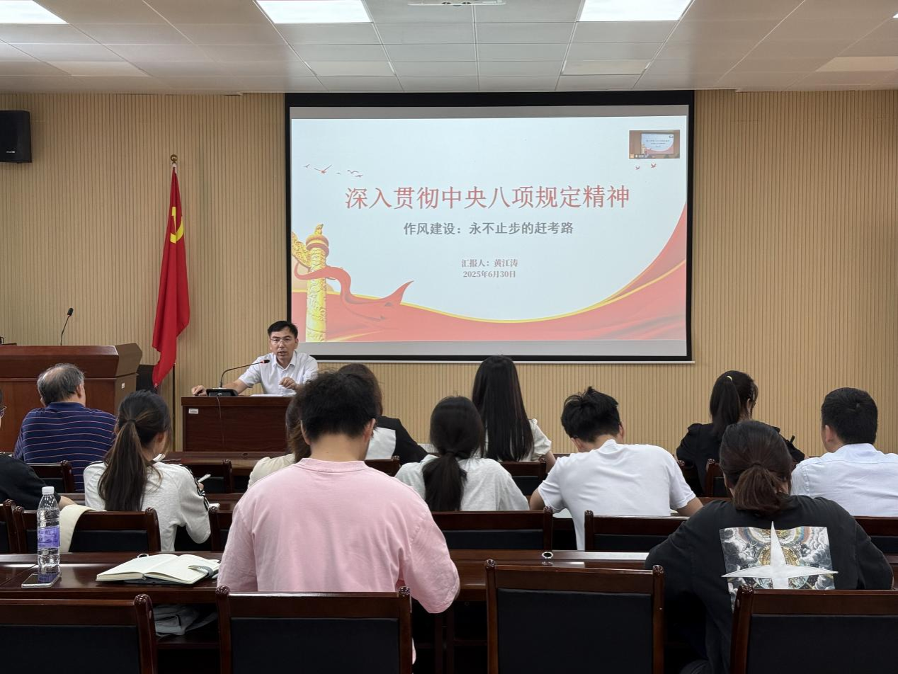 专题党课覆盖教师、研究生、本科生多层面党员,通过“理论解读+案例剖析+实践指引”,使党员深刻认识中央八项规定精神的时代内涵和实践要求。学院将通过建章立制、规范管理、强化执行,持续推进作风建设与教育教学、学生教育管理、科研管理的深度融合,诠释“作风建设永远在路上”的深刻内涵。
