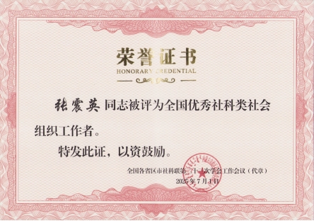 7月1日,全国各省区市社科联第二十三次学会工作会议在呼和浩特召开。会议主题为“为进一步推进中华民族共同体建设贡献社科类社会组织力量”。来自全国30个省区市社科联代表、社科类社会组织代表、中央及内蒙古媒体代表共170余人参加会议。会议宣读了《关于表彰全国各省区市社科联先进社会组织和优秀社会组织工作者的决定》,对全国各省(自治区、直辖市)社科联的144个先进社会组织和141名优秀社会组织工作者进行了表彰,以进一步激励社科类社会组织、社会组织工作者在促进学术繁荣、助力经济社会发展方面更好发挥作用。其中,开元官网社科联副主席、广西古代文学学会会长张震英教授获评“全国优秀社科类社会组织工作者”。