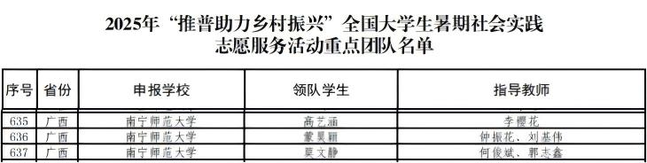 近日,教育部语言文字应用管理司、共青团中央青年发展部公布了2025年“推普助力乡村振兴”全国大学生暑期社会实践志愿服务活动入选团队名单。此次活动全国共有1680所高校的8013支团队、8万余名师生报名,经专家审议,最终推荐1000支团队为重点团队、1000支为协同团队。