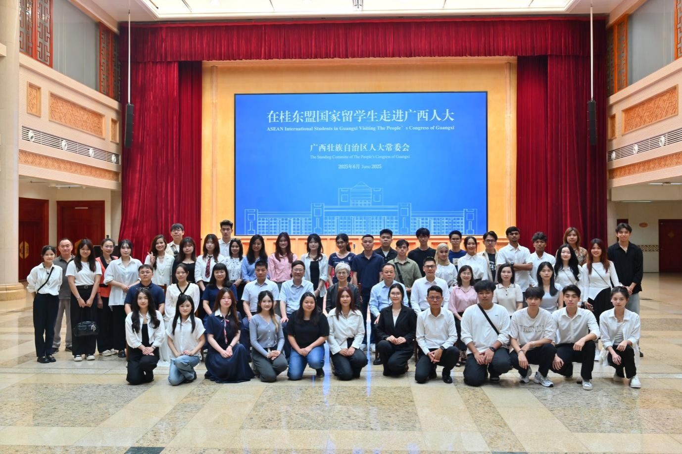 为了促进东盟国家留学生对中国制度和文化的了解,加深不同国家学生之间的交流与友谊,6月7日,我院组织来自柬埔寨、泰国、越南和老挝的10余名留学生代表,前往广西人民大会堂参观学习。