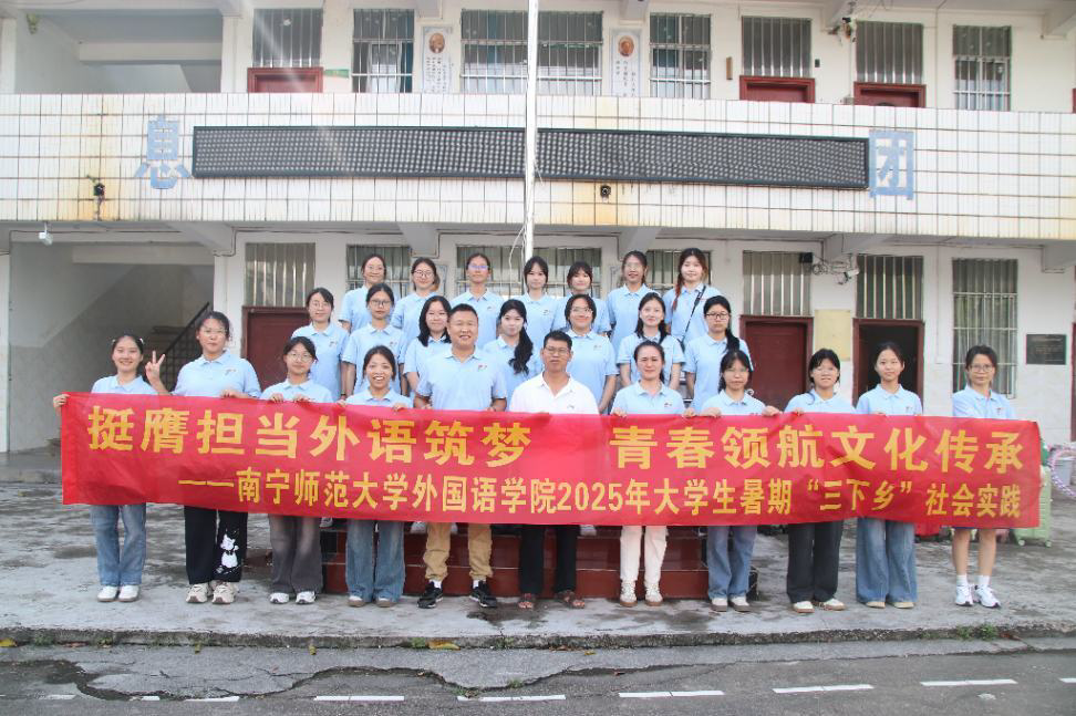 为深入学习贯彻习近平新时代中国特色社会主义思想,助力乡村振兴战略与文化传承,7月12日下午,外国语学院“语翼启梦”实践团在学院党委副书记刘晖晖与学工办老师的带领下,奔赴广西南宁市马山县林圩镇合理小学,开展“挺膺担当外语筑梦,青春领航文化传承”主题“三下乡”社会实践活动。本次活动主要将专业知识与文化传承相结合,在深化非遗文化传承的同时锤炼学生服务社会能力。