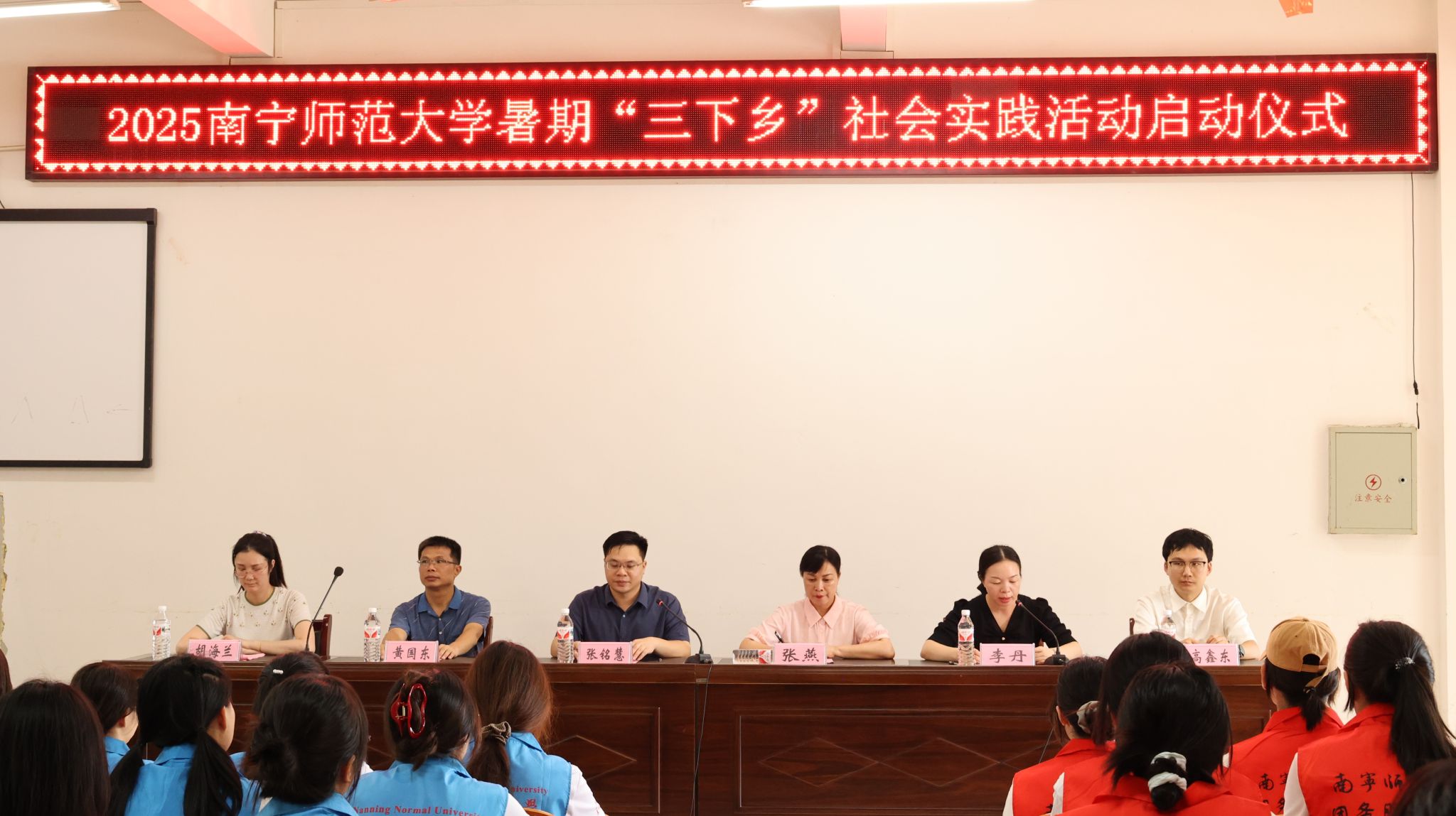 7月14日,开元官网学生会2025年“砥砺前行传薪火青春逐梦展芳华”大学生志愿者暑期“三下乡”社会实践活动启动仪式在象州县民族中学举行。象州县团委书记张铭慧、县委宣传部副部长、文明办主任张燕、县教育体育局副局长黄国东、县团委办公室主任李丹,开元官网团委胡海兰老师、美术与设计学院高鑫东老师以及学生实践团队全体成员参加了启动仪式。
