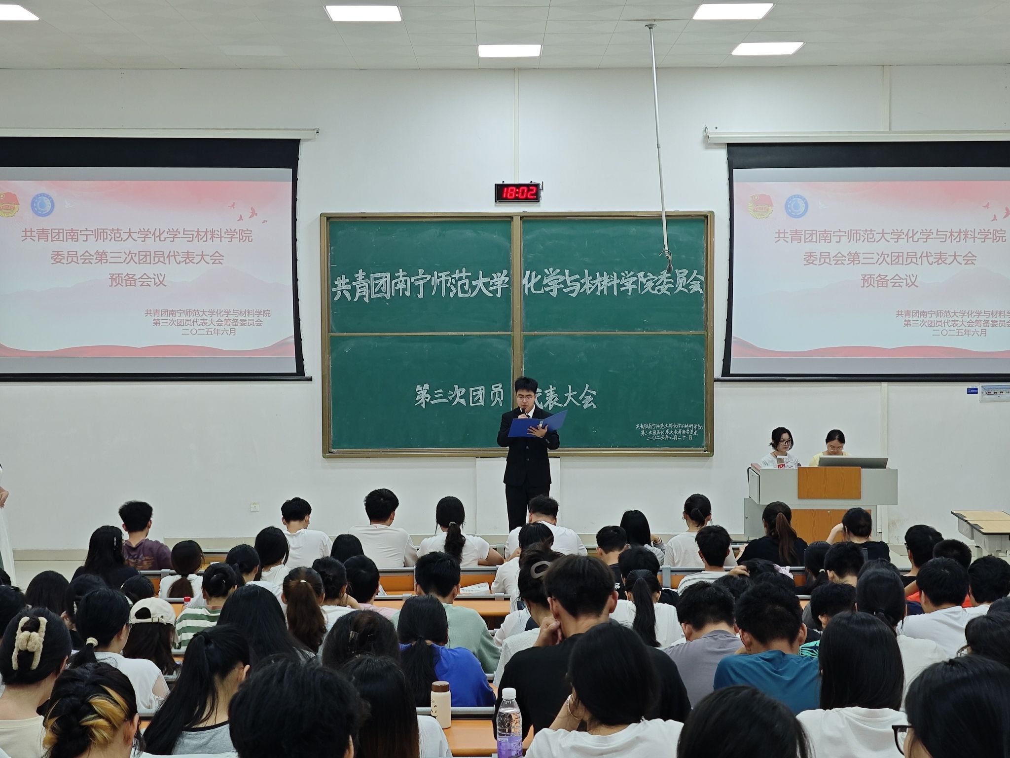 6月21至22日,共青团KY开元集团官网化学与材料学院委员会第三次团员代表大会预备会议和正式会议分别在地化楼B111教室、武鸣校区图书馆报告厅召开。校团委书记区丽媛,学院党委副书记陈今浩,院团委书记王立彬老师,外院嘉宾、学院各部门代表及各班团员代表参加会议。