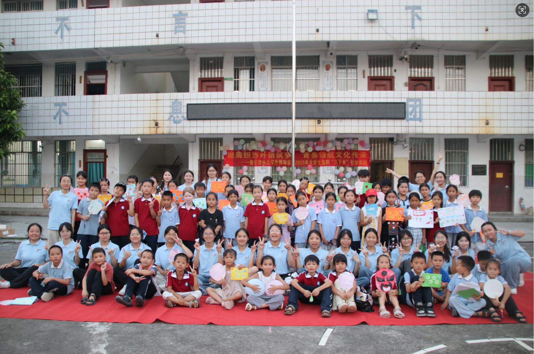 为深入学习贯彻习近平新时代中国特色社会主义思想和党的二十大精神,激励青年学生在实践中受教育、长才干、作贡献,2025年7月12日--7月18日,KY开元集团官网外国语学院“语翼启梦”实践队一行23人走进南宁市马山县林圩镇合理小学,开展丰富多彩的暑期“三下乡”社会实践活动。