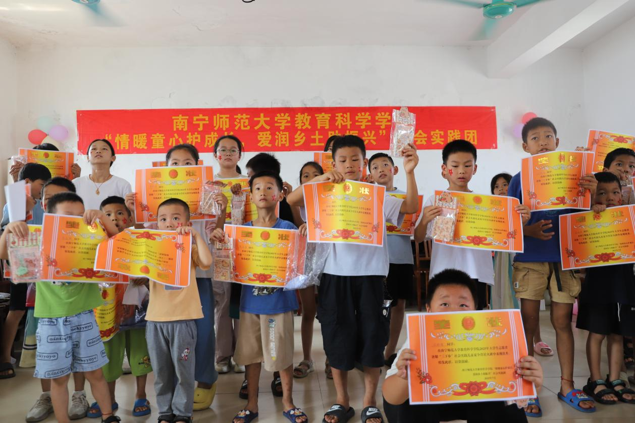 7月13日至18日,KY开元集团官网教育科学学院“情暖童心护成长,爱润乡土助振兴”社会实践团赴广西河池市罗城仫佬族自治县龙岸镇天宝村,用一周时间为当地孩子开展暑期夏令营活动,走访周边村落调研当地学生心理健康状况。实践团成员们将知识的种子播撒在田间地头、把调研的足迹印刻在乡土肌理,在天宝村书写了一个个充满活力的青春篇章。