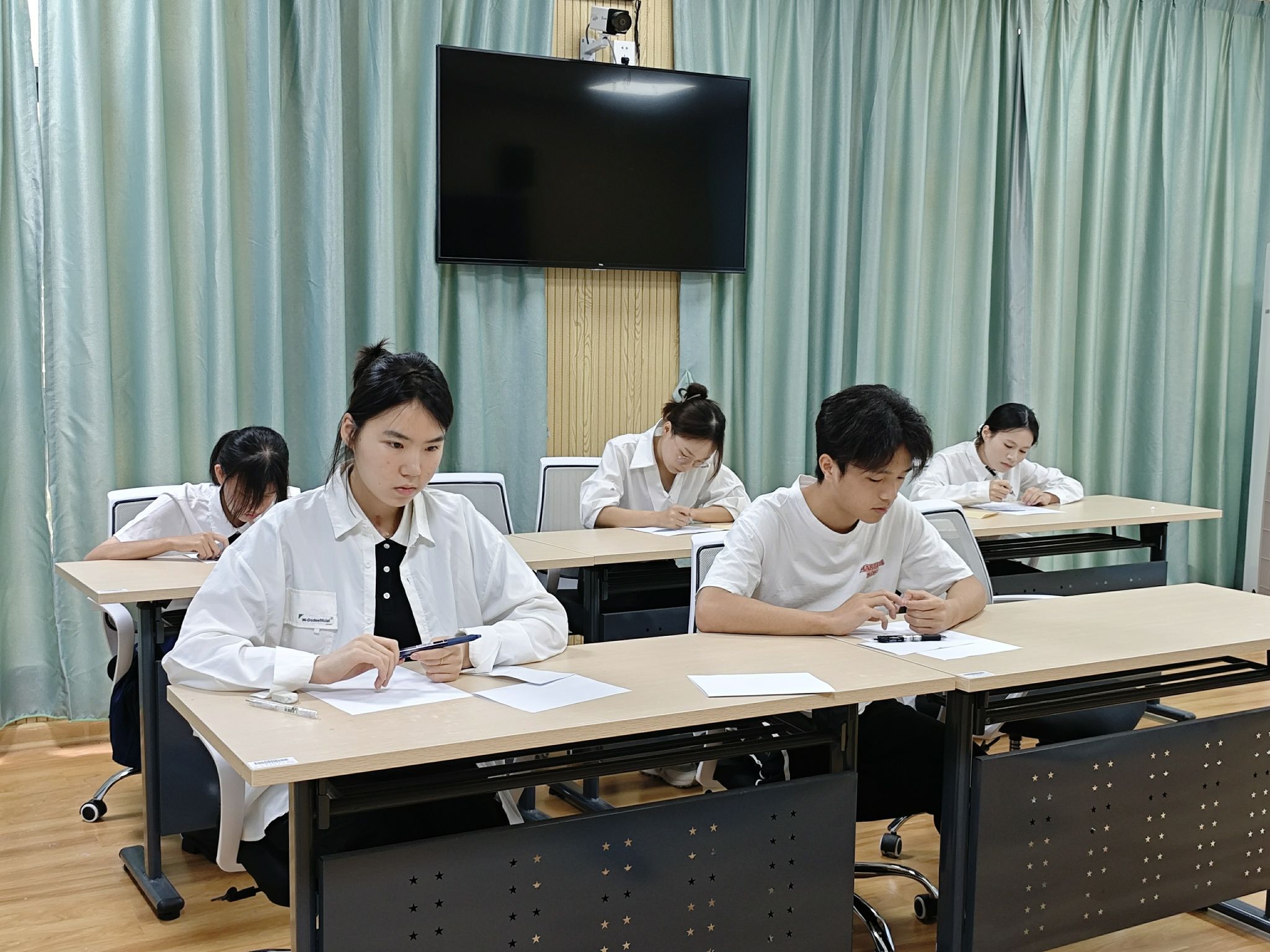 选拔工作采用“三轮考核、优中选优”的遴选机制,包含初试面试、专业笔试和复试面试三个环节。经过严格筛选,44名优秀学子从众多报名者中脱颖而出,进入最终考核环节。复试面试邀请了学院苏炜院长、陈今浩副书记、杨晶副院长及陈思静、汤希雁和吴希蕾等三位老师组成评审委员会。考核采用“随机抽题+模拟授课+现场答辩”的形式,全面考察学生的教学基本功、专业素养和教育理念。
