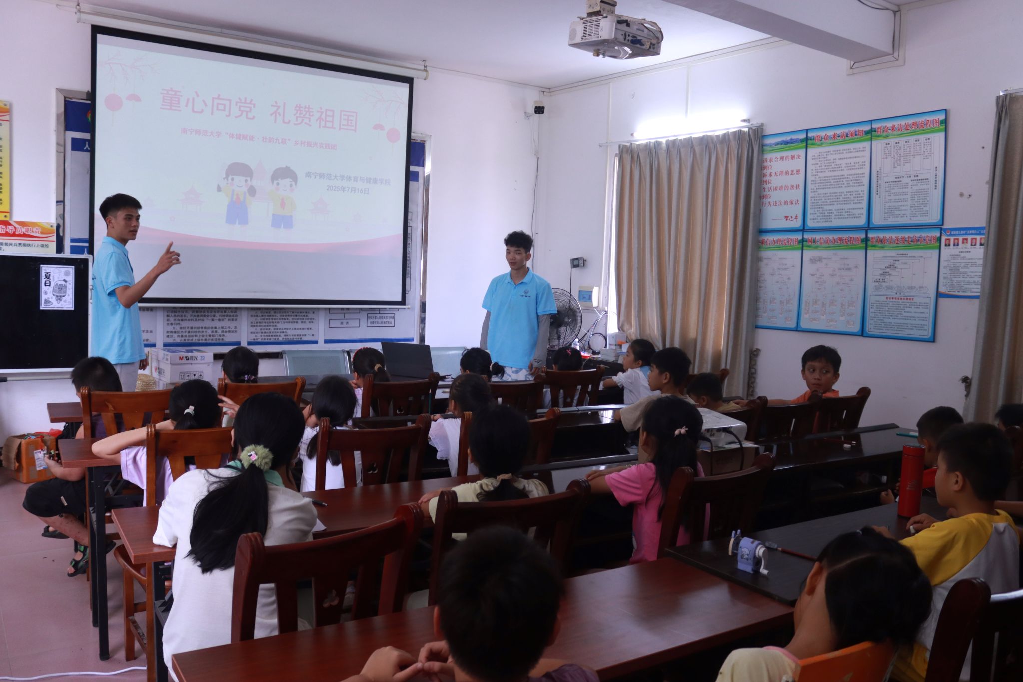 为促进青年大学生赋能乡村振兴,让开元官网青年学子在实践中受教育、长才干、做贡献,体育与健康学院“体健赋能·壮韵九联”实践团于7月14日-7月20日在南宁市武鸣区九联村开展为期七天的七彩课堂支教活动。